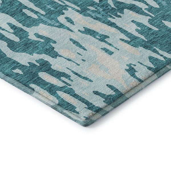 Mayfield Premium Machine Washable Abstract AMF957 Teal 3 ft. x 5 ft. Area Rug