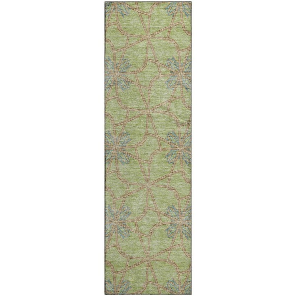 Mayfield Premium Machine Washable Abstract AMF958 Aloe 2 ft. 3 in. x 7 ft. 6 in. Runner Rug