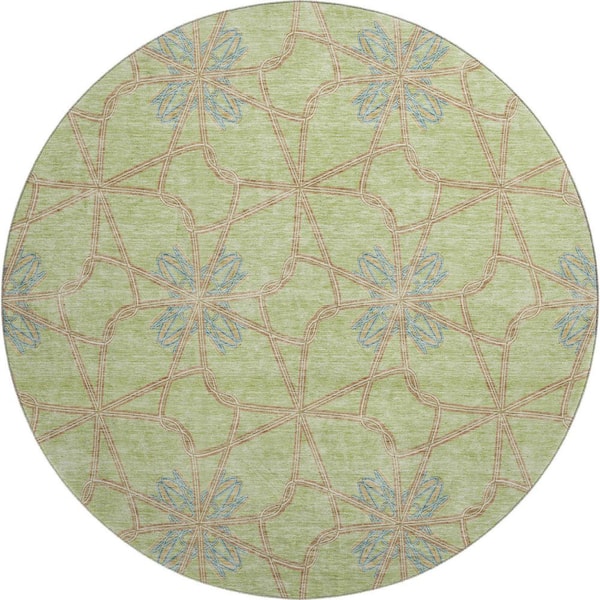 Mayfield Premium Machine Washable Abstract AMF958 Aloe 8 ft. x 8 ft. Round Rug