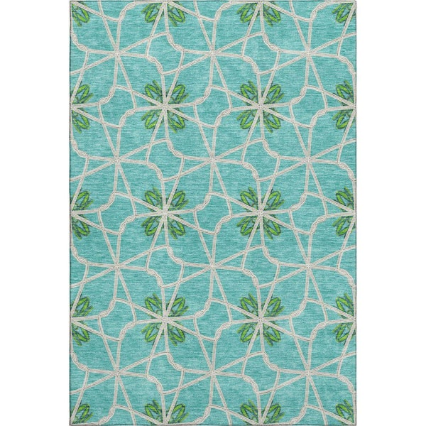 Mayfield Premium Machine Washable Abstract AMF958 Aqua 10 ft. x 14 ft. Area Rug