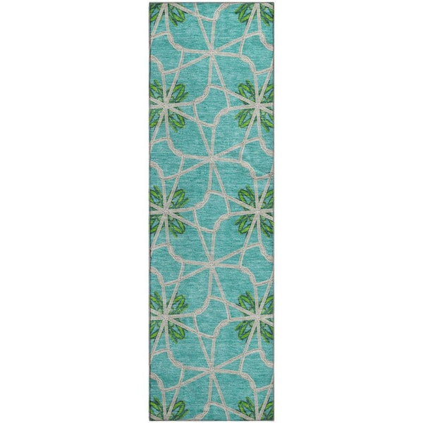 Mayfield Premium Machine Washable Abstract AMF958 Aqua 2 ft. 3 in. x 7 ft. 6 in. Runner Rug