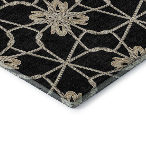 Mayfield Premium Machine Washable Abstract AMF958 Black 3 ft. x 5 ft. Area Rug