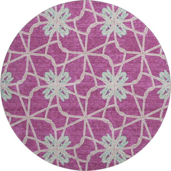 Mayfield Premium Machine Washable Abstract AMF958 Blush 8 ft. x 8 ft. Round Rug