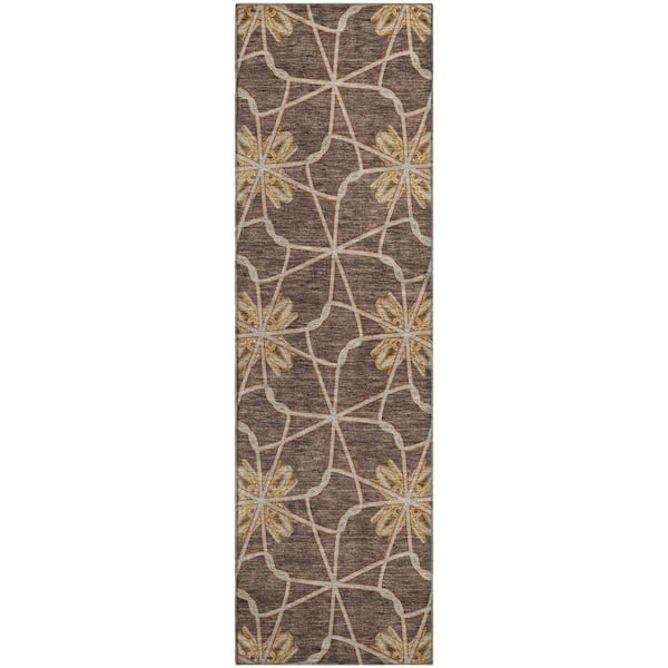Mayfield Premium Machine Washable Abstract AMF958 Brown 2 ft. 3 in. x 7 ft. 6 in. Runner Rug