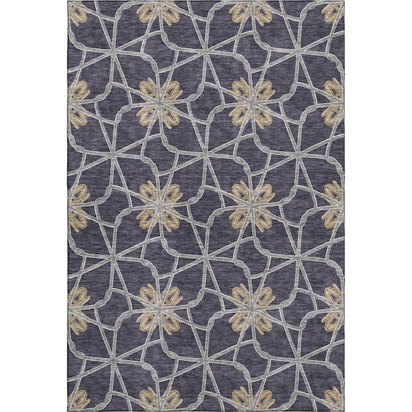 Mayfield Premium Machine Washable Abstract AMF958 Charcoal 5 ft. x 7 ft. 6 in. Area Rug
