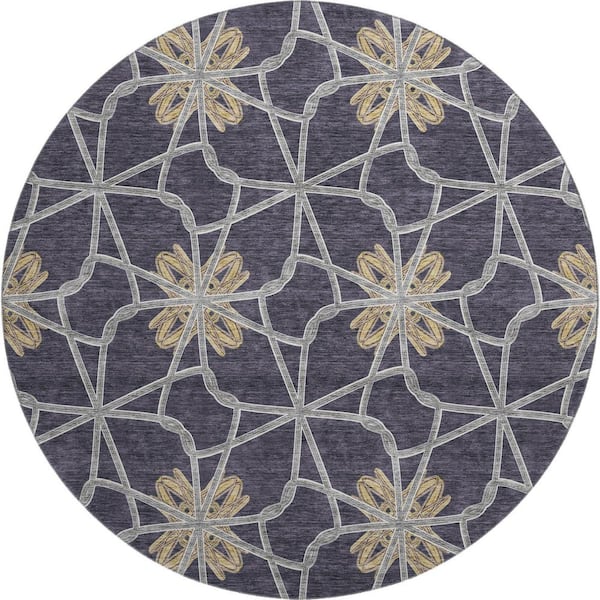 Mayfield Premium Machine Washable Abstract AMF958 Charcoal 8 ft. x 8 ft. Round Rug
