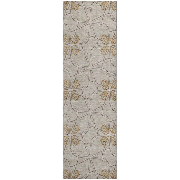 Mayfield Premium Machine Washable Abstract AMF958 Ivory 2 ft. 3 in. x 7 ft. 6 in. Runner Rug