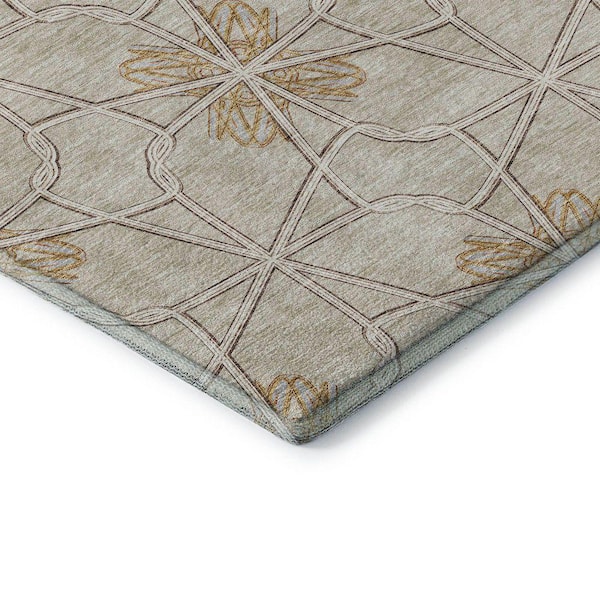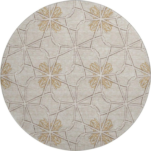 Mayfield Premium Machine Washable Abstract AMF958 Ivory 8 ft. x 8 ft. Round Rug