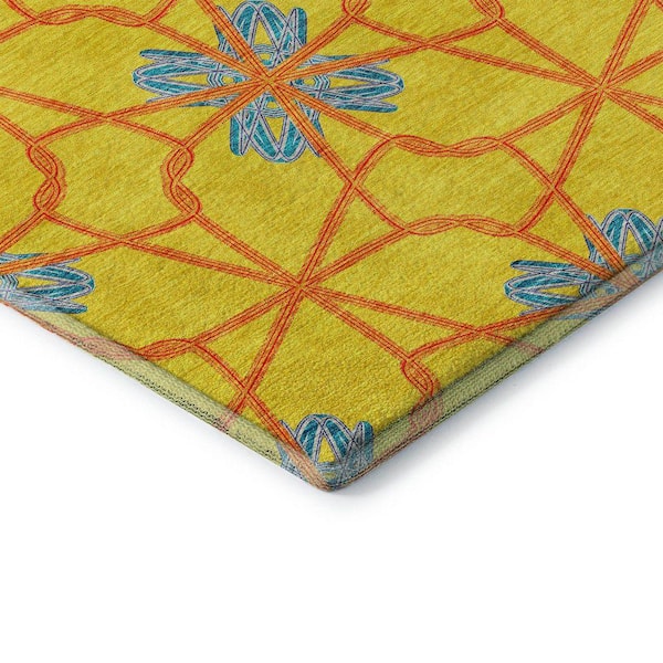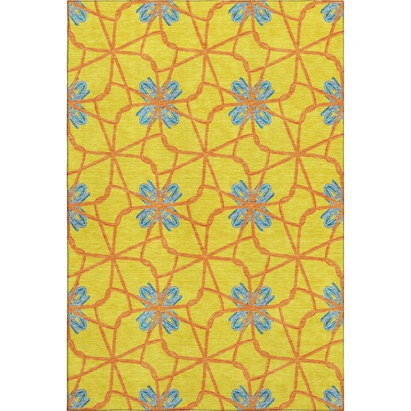 Mayfield Premium Machine Washable Abstract AMF958 Yellow 9 ft. x 12 ft. Area Rug