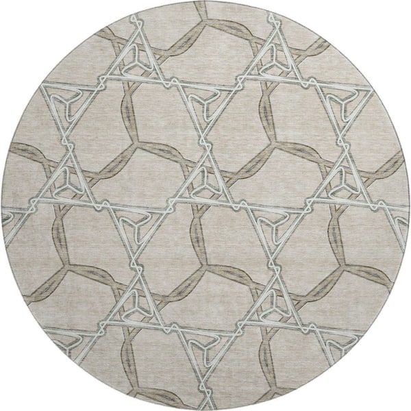 Mayfield Premium Machine Washable Abstract AMF959 Beige 8 ft. x 8 ft. Round Rug
