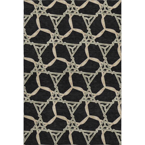 Mayfield Premium Machine Washable Abstract AMF959 Black 3 ft. x 5 ft. Area Rug