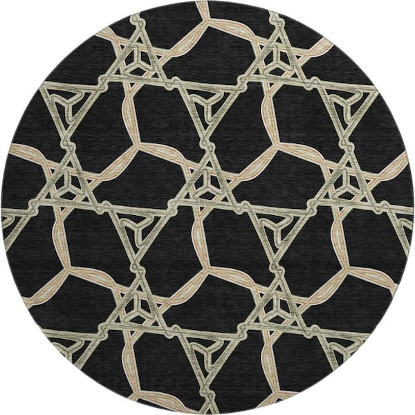 Mayfield Premium Machine Washable Abstract AMF959 Black 8 ft. x 8 ft. Round Rug