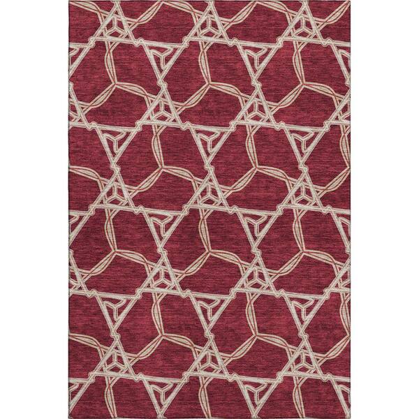 Mayfield Premium Machine Washable Abstract AMF959 Burgundy 3 ft. x 5 ft. Area Rug