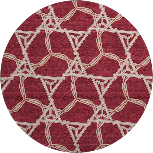 Mayfield Premium Machine Washable Abstract AMF959 Burgundy 8 ft. x 8 ft. Round Rug