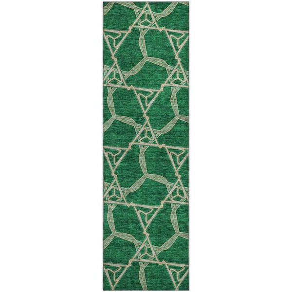 Mayfield Premium Machine Washable Abstract AMF959 Emerald 2 ft. 3 in. x 7 ft. 6 in. Runner Rug