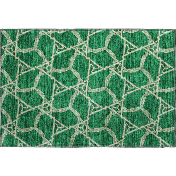Mayfield Premium Machine Washable Abstract AMF959 Emerald 2 ft. x 3 ft. Area Rug