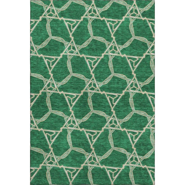 Mayfield Premium Machine Washable Abstract AMF959 Emerald 5 ft. x 7 ft. 6 in. Area Rug