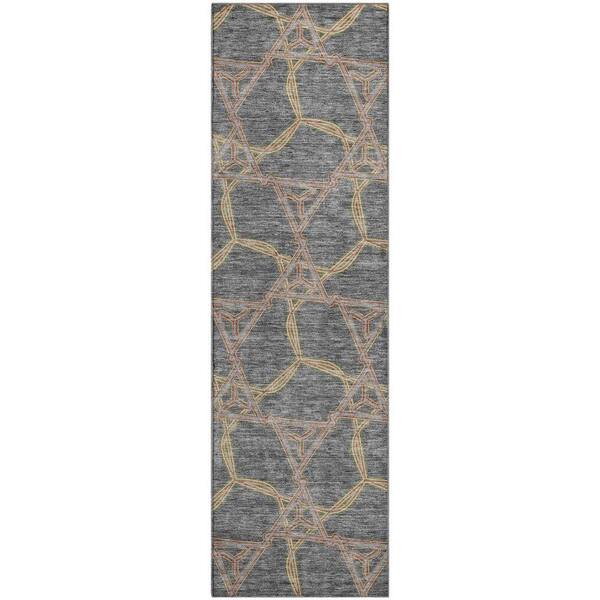 Mayfield Premium Machine Washable Abstract AMF959 Gray 2 ft. 3 in. x 7 ft. 6 in. Runner Rug