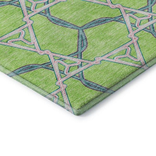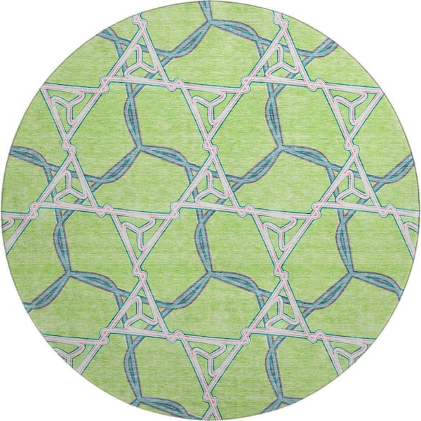 Mayfield Premium Machine Washable Abstract AMF959 Lime 8 ft. x 8 ft. Round Rug