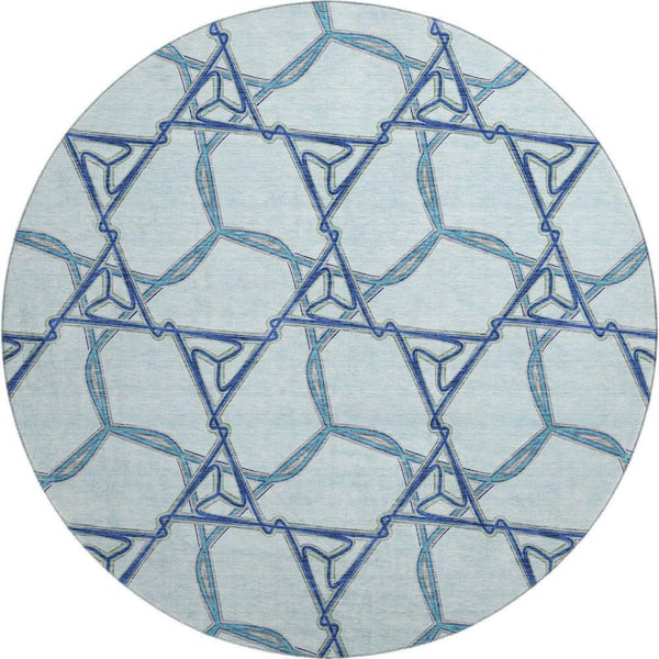 Mayfield Premium Machine Washable Abstract AMF959 Sky 8 ft. x 8 ft. Round Rug