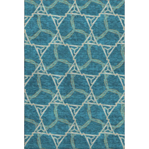 Mayfield Premium Machine Washable Abstract AMF959 Teal 8 ft. x 10 ft. Area Rug