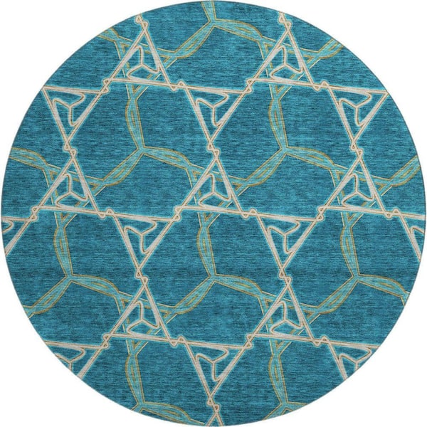 Mayfield Premium Machine Washable Abstract AMF959 Teal 8 ft. x 8 ft. Round Rug