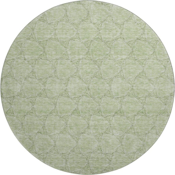 Mayfield Premium Machine Washable Abstract AMF960 Aloe 8 ft. x 8 ft. Round Rug