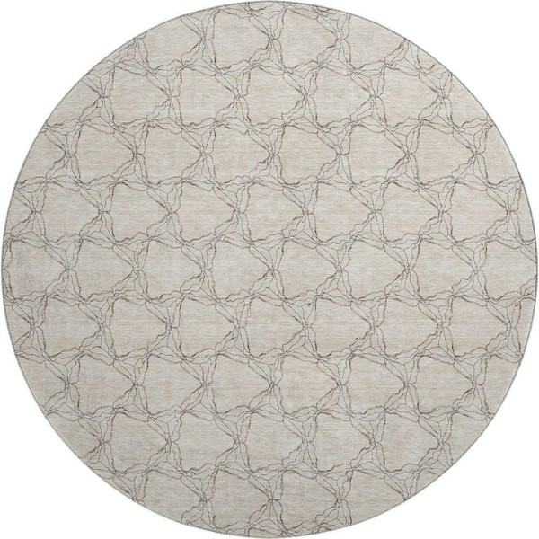 Mayfield Premium Machine Washable Abstract AMF960 Beige 8 ft. x 8 ft. Round Rug