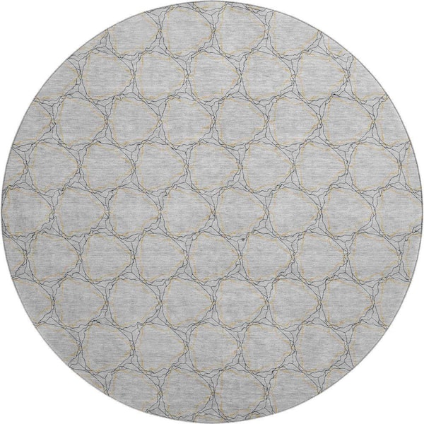 Mayfield Premium Machine Washable Abstract AMF960 Gray 8 ft. x 8 ft. Round Rug