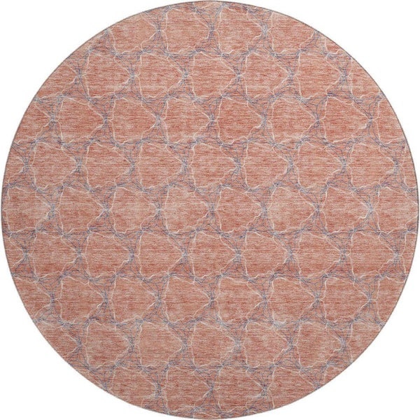 Mayfield Premium Machine Washable Abstract AMF960 Salmon 8 ft. x 8 ft. Round Rug
