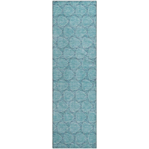 Mayfield Premium Machine Washable Abstract AMF960 Teal 2 ft. 3 in. x 7 ft. 6 in. Runner Rug