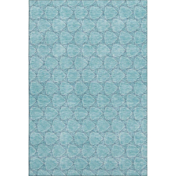 Mayfield Premium Machine Washable Abstract AMF960 Teal 5 ft. x 7 ft. 6 in. Area Rug