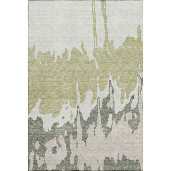 Mayfield Premium Machine Washable Abstract AMF961 Aloe 10 ft. x 14 ft. Area Rug