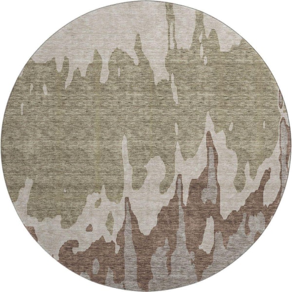 Mayfield Premium Machine Washable Abstract AMF961 Beige 8 ft. x 8 ft. Round Rug