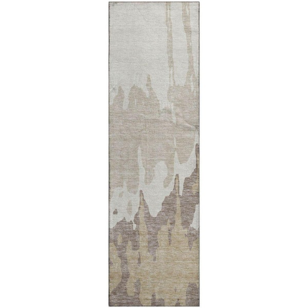 Mayfield Premium Machine Washable Abstract AMF961 Ivory 2 ft. 3 in. x 7 ft. 6 in. Runner Rug