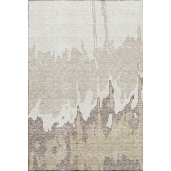Mayfield Premium Machine Washable Abstract AMF961 Ivory 3 ft. x 5 ft. Area Rug