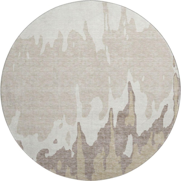 Mayfield Premium Machine Washable Abstract AMF961 Ivory 8 ft. x 8 ft. Round Rug