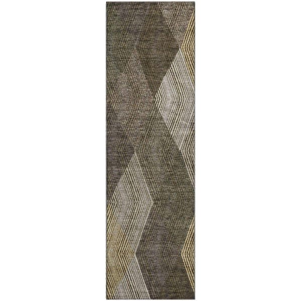 Mayfield Premium Machine Washable Abstract AMF962 Brown 2 ft. 3 in. x 7 ft. 6 in. Runner Rug