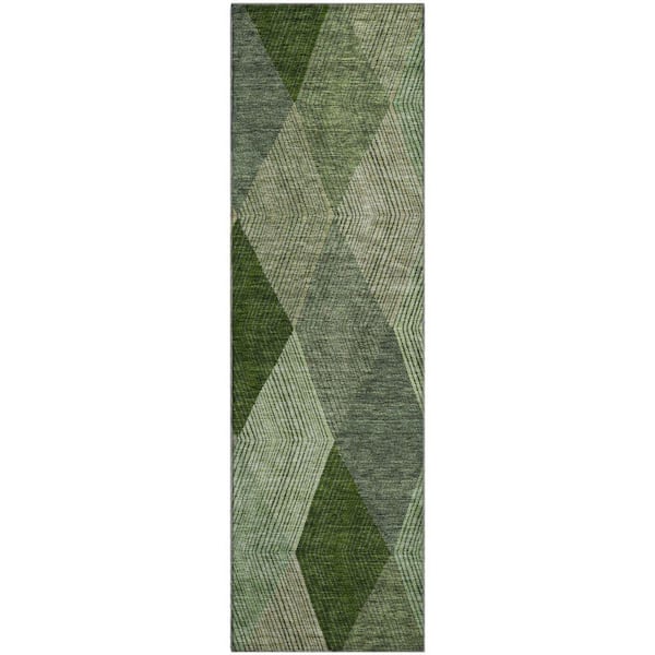 Mayfield Premium Machine Washable Abstract AMF962 Green 2 ft. 3 in. x 7 ft. 6 in. Runner Rug