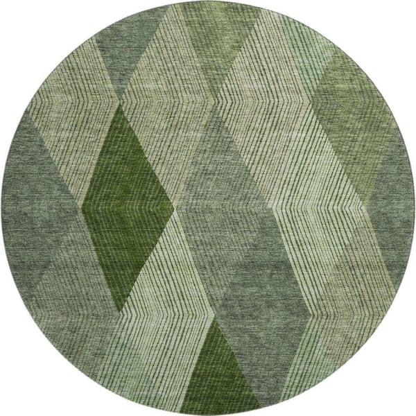 Mayfield Premium Machine Washable Abstract AMF962 Green 8 ft. x 8 ft. Round Rug