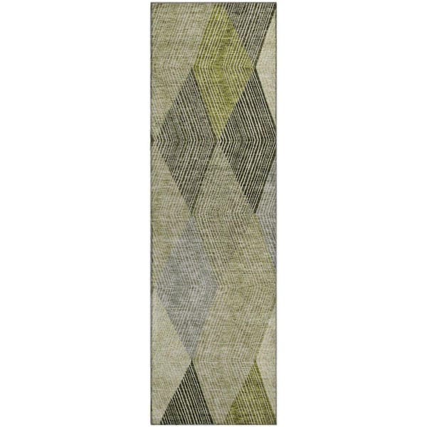 Mayfield Premium Machine Washable Abstract AMF962 Olive 2 ft. 3 in. x 7 ft. 6 in. Runner Rug