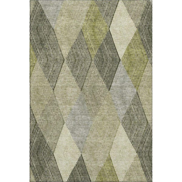 Mayfield Premium Machine Washable Abstract AMF962 Olive 5 ft. x 7 ft. 6 in. Area Rug