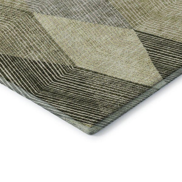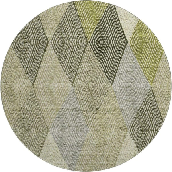 Mayfield Premium Machine Washable Abstract AMF962 Olive 8 ft. x 8 ft. Round Rug
