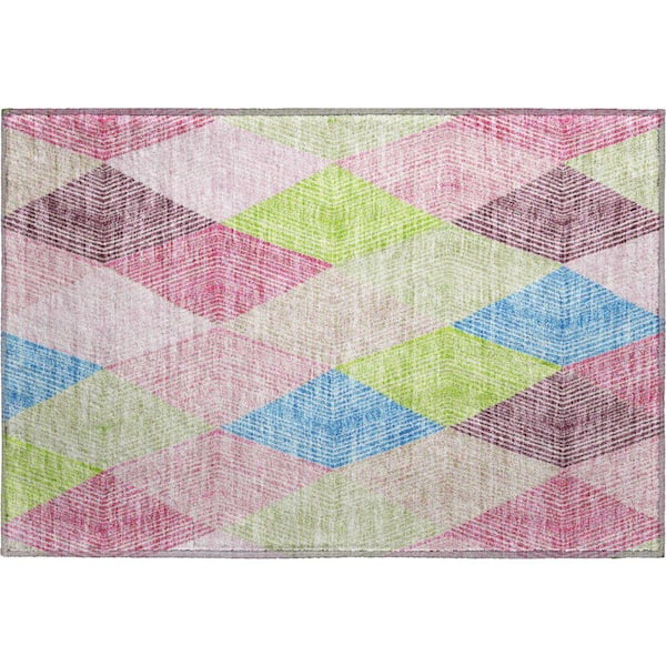 Mayfield Premium Machine Washable Abstract AMF962 Pink 1 ft. 8 in. x 2 ft. 6 in. Area Rug