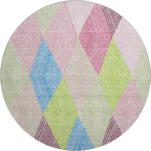 Mayfield Premium Machine Washable Abstract AMF962 Pink 8 ft. x 8 ft. Round Rug
