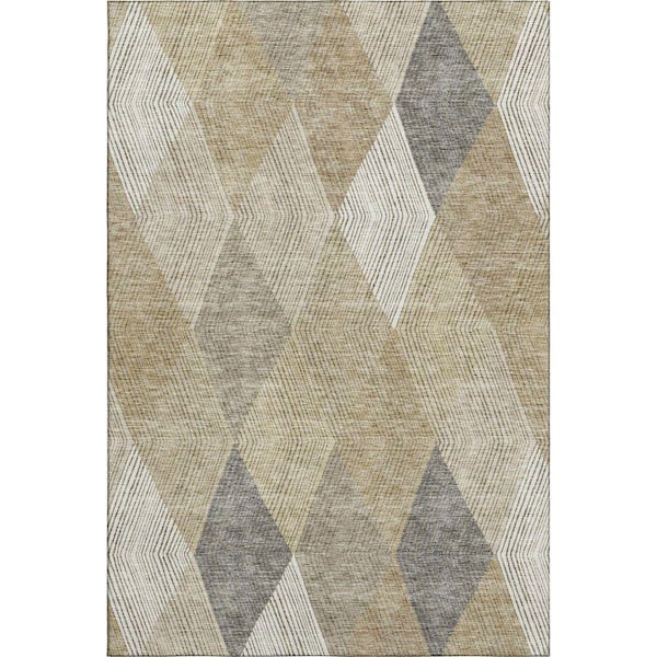 Mayfield Premium Machine Washable Abstract AMF962 Wheat 5 ft. x 7 ft. 6 in. Area Rug