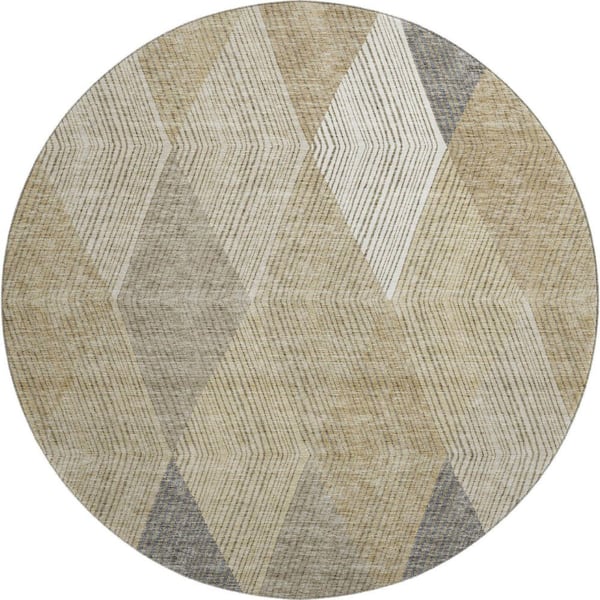 Mayfield Premium Machine Washable Abstract AMF962 Wheat 8 ft. x 8 ft. Round Rug