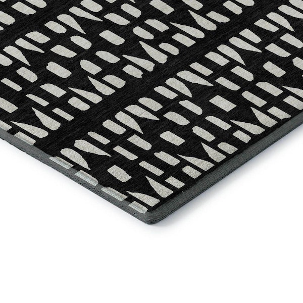 Mayfield Premium Machine Washable Abstract AMF963 Black 8 ft. x 10 ft. Area Rug