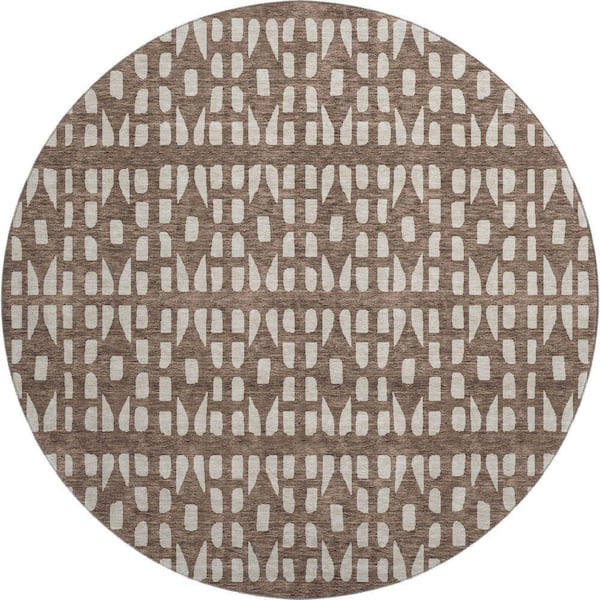 Mayfield Premium Machine Washable Abstract AMF963 Brown 8 ft. x 8 ft. Round Rug