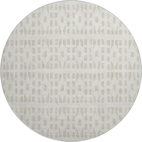 Mayfield Premium Machine Washable Abstract AMF963 Ivory 8 ft. x 8 ft. Round Rug
